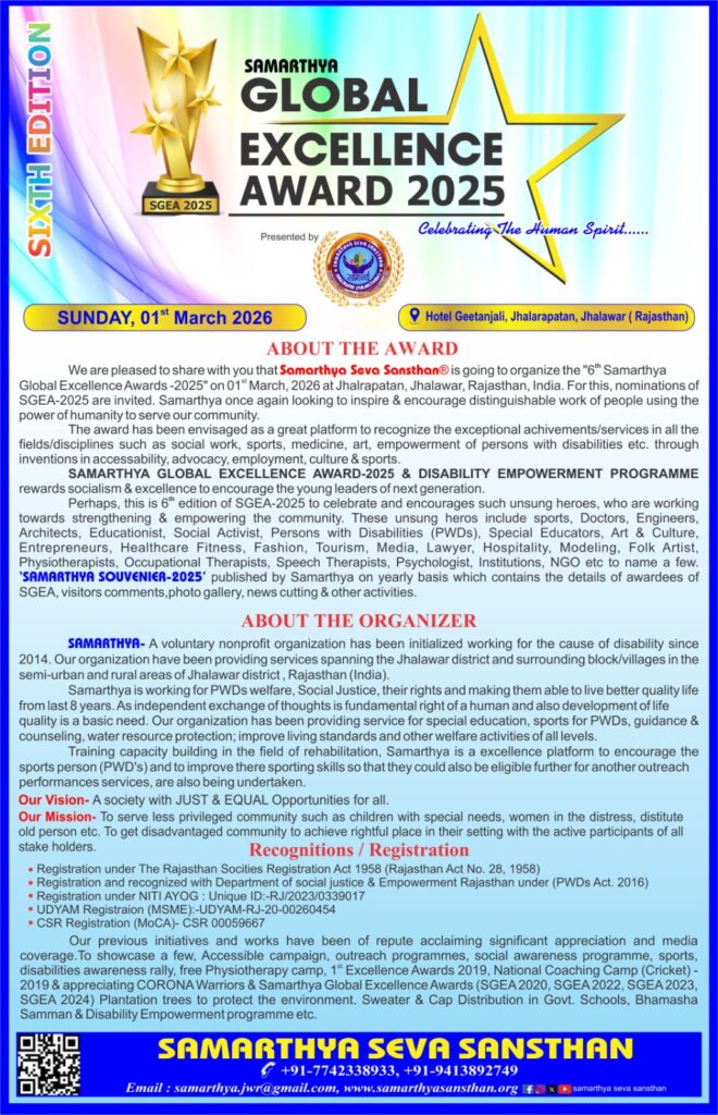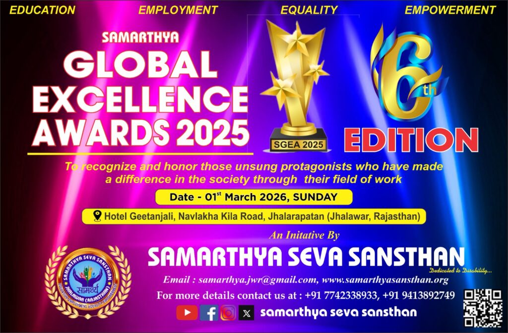 SAMARTHYA GLOBAL EXCELLENCE AWARD-2025 (SGEA 2025) & SAMARTHYA RAJASTHAN GAURAV AWARD-2025 (SRGA 2025)
